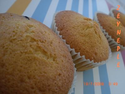 Yumurtayı bir kaba kırın ve üstüne esmer şeker ekleyip çırpın. Daha sonra süt yağ ekleyip çırpmaya devam edin. Üstüne un, vanilya ve kabartma tozu ekleyin ve çırpmaya devam edin. Kalıplara karışımı dökün damla çikolata ve kuru meyvalarla üstüne dekor yapın 170 derecede ısıtın ve dilimlenmiş portakalı servis yaparken üzerine dizin.